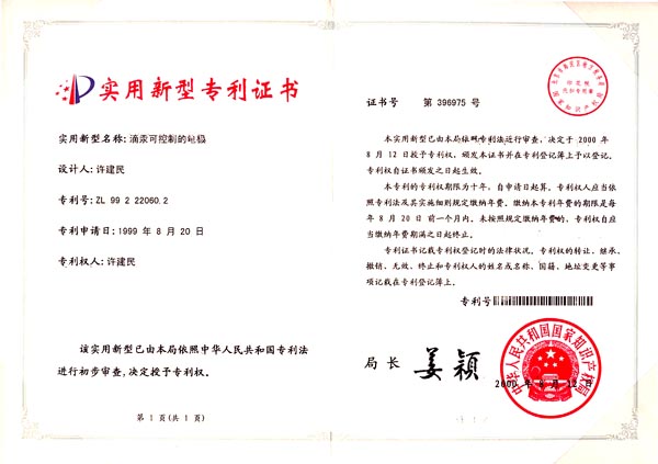 以下是我們的專利證書,你可以親自到國家知識(shí)產(chǎn)權(quán)局去驗(yàn)證,以便確定專利的真實(shí)性?